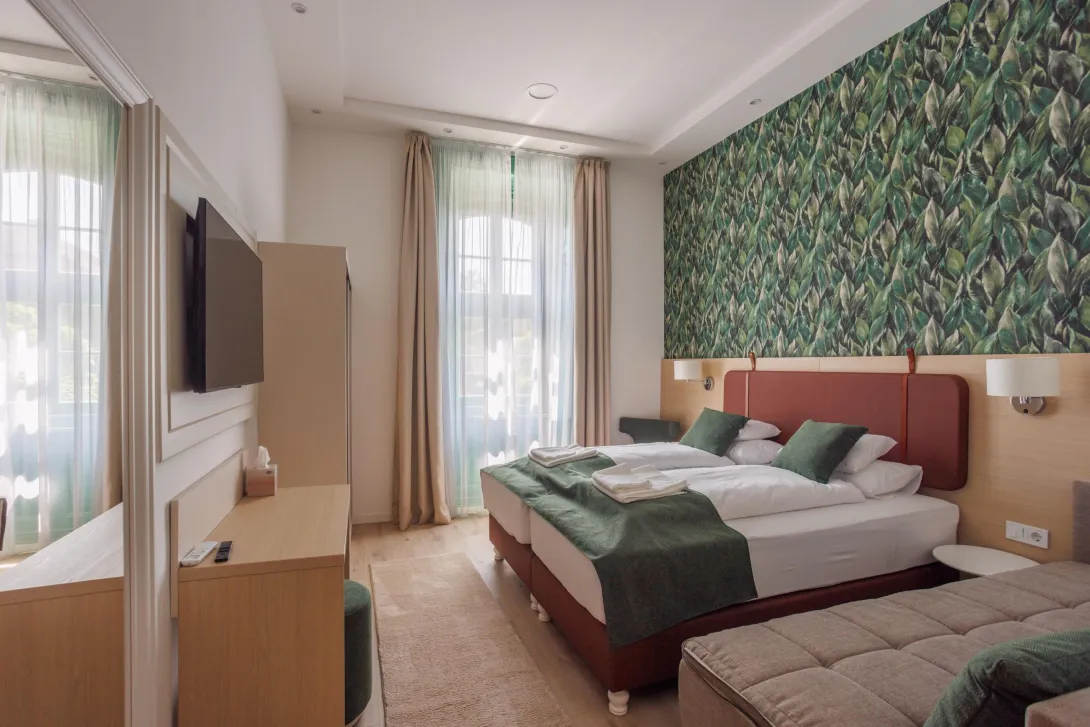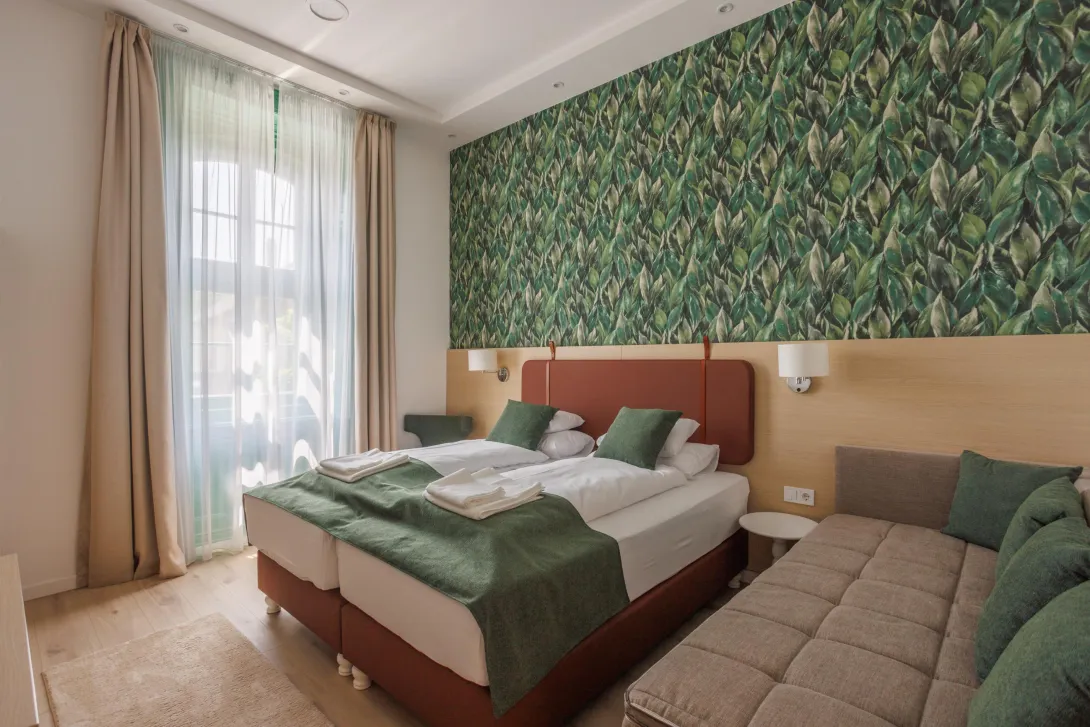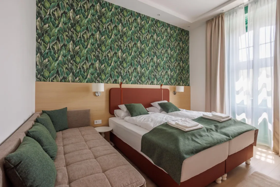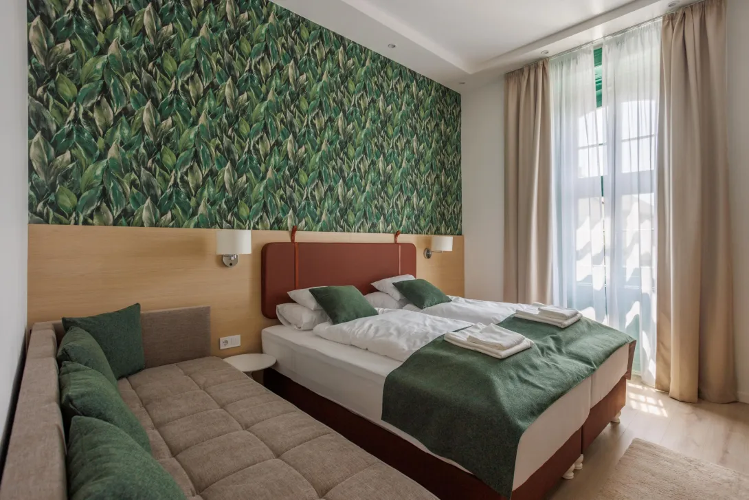 - 3. szoba: Franciaággyá alakított boxspring ágy + 1 db lounge + Wc