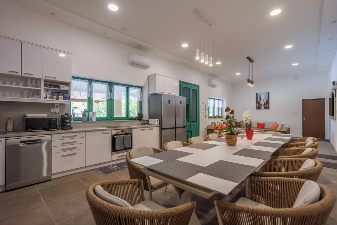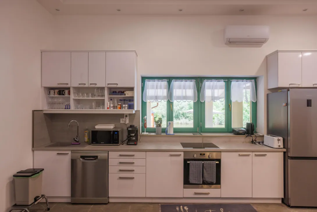 A család, barátok, kollégák élvezhetik a ház és a kert kényelmét: ping-pong asztal, darts tábla, játszótér, napozóágyak, bográcsozó hely, grillkocsi áll rendelkezésetekre, melyhez fát biztosítunk.